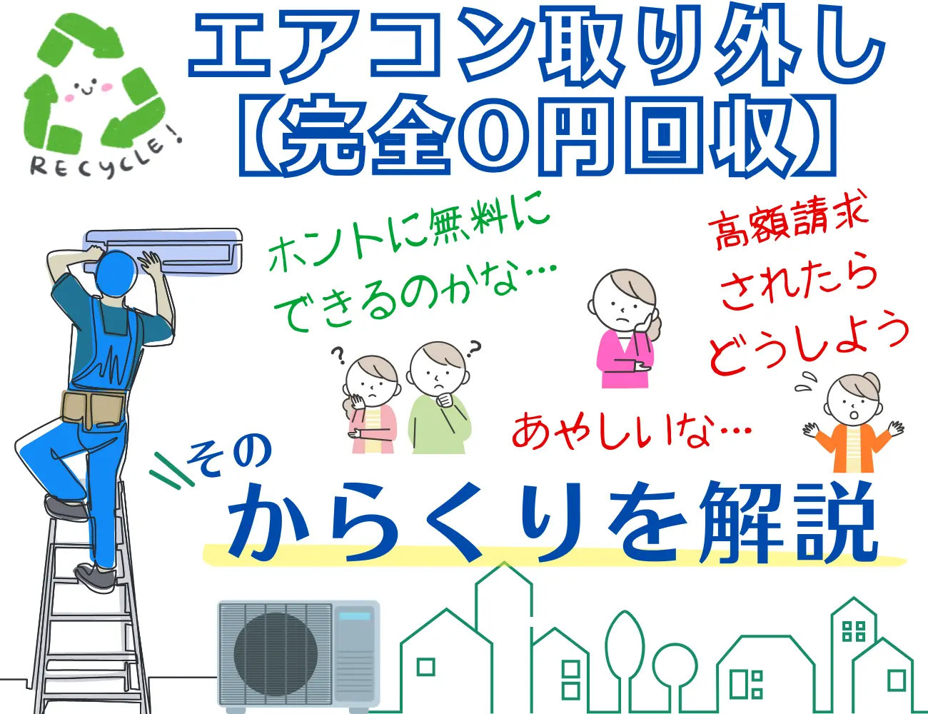 ネットで購入したエアコンの取り付けもお任せください!量販店で買うと工事費込みで12万円くらいのところ、ネット購入(約43,000円)+当社工事(12,000円)+取り外し処分費(0円)=55,000円で65,000円もお得!古いエアコンは無料回収するので、処分費用もゼロです。